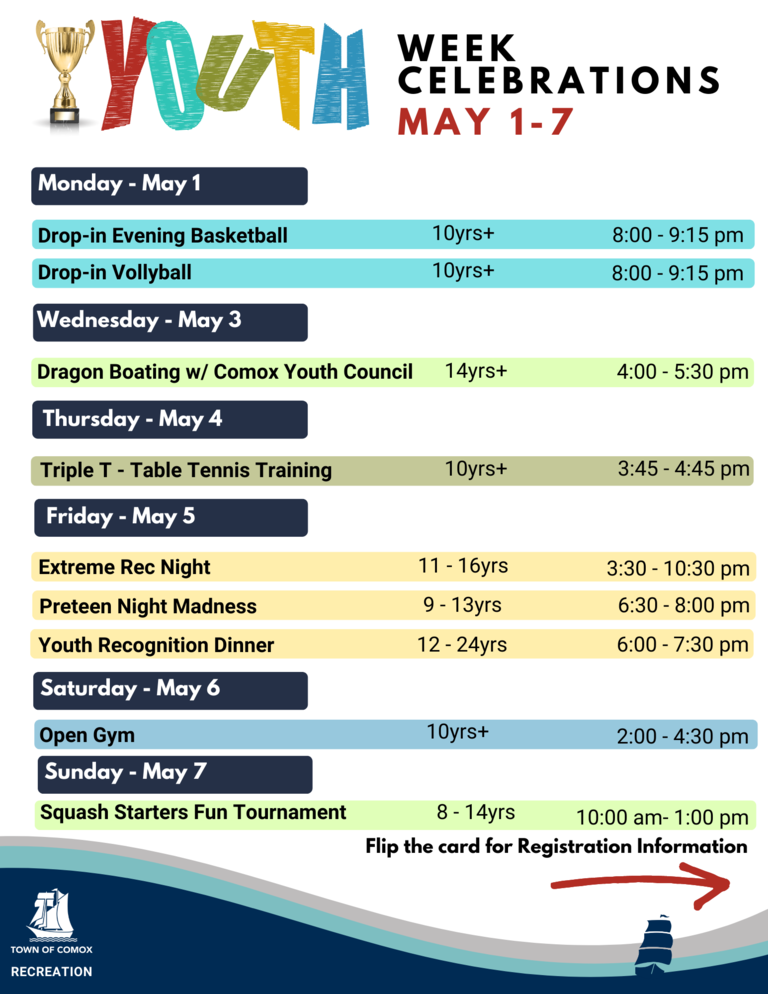 May 1st marks the beginning of Youth Week here in British Columbia and the staff here at Cowichan Lake Community Services have partnered with some amazing local businesses and organizations to put together a fun-filled schedule of activities to celebrate! There is no cost to these activities, and if you have any questions please don't hesitate to call us at (250) 749-6822 for information.